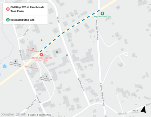 Blue Bus stops 262 and 263 at NM-68 & CR-51, and stops 356 and 357 at NM-68 & CR-49 will be closed for bus stop upgrades.